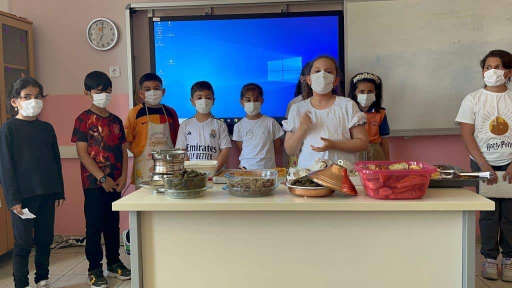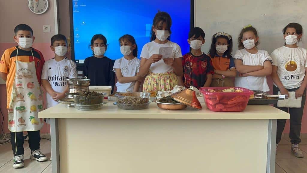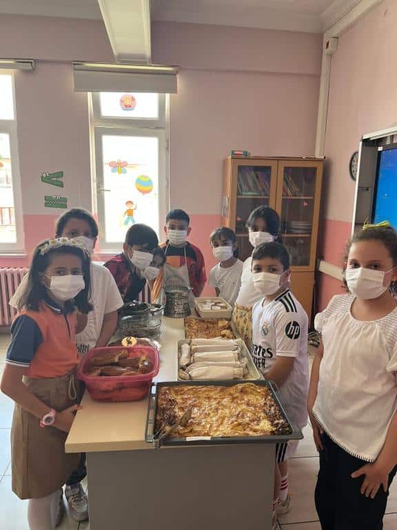 OKULUMUZ 3-D SINIFI ÖĞRETMENİ AYŞE KÖSE VE ÖĞRENCİLERİ, YÜRÜTMÜŞ OLDUKLARI E TWİNNİNG PREJESİ HER MEDENİYET BİR YILDIZ MAYIS AYI ETKİNLİĞİ KAPSAMINDA YÖRRESEL YEMEKLERİMİZ TANITILDI.ÖĞRENCİLER ERZİNCANIN YÖRESEL YEMEKLERİ; ETLİ YAPRAK SARMASI, SU BÖREĞİ, KETE, LOKUM, KASEFE GİBİ BİR ÇOK YÖRESEL YEMEĞİ TANITTILAR, SONRA HAZIRLADIKLARI YEMEKLERİ ARKADAŞLARINA, OKUL İDARESİNE VE ÖĞRETMENLERİNE İKRAM ETTİLER.ÖĞRENCİLERİMİZE BU GÜZEL ÇALIŞMALARINDAN DOLAYI TEŞEKKÜR EDERİZ.